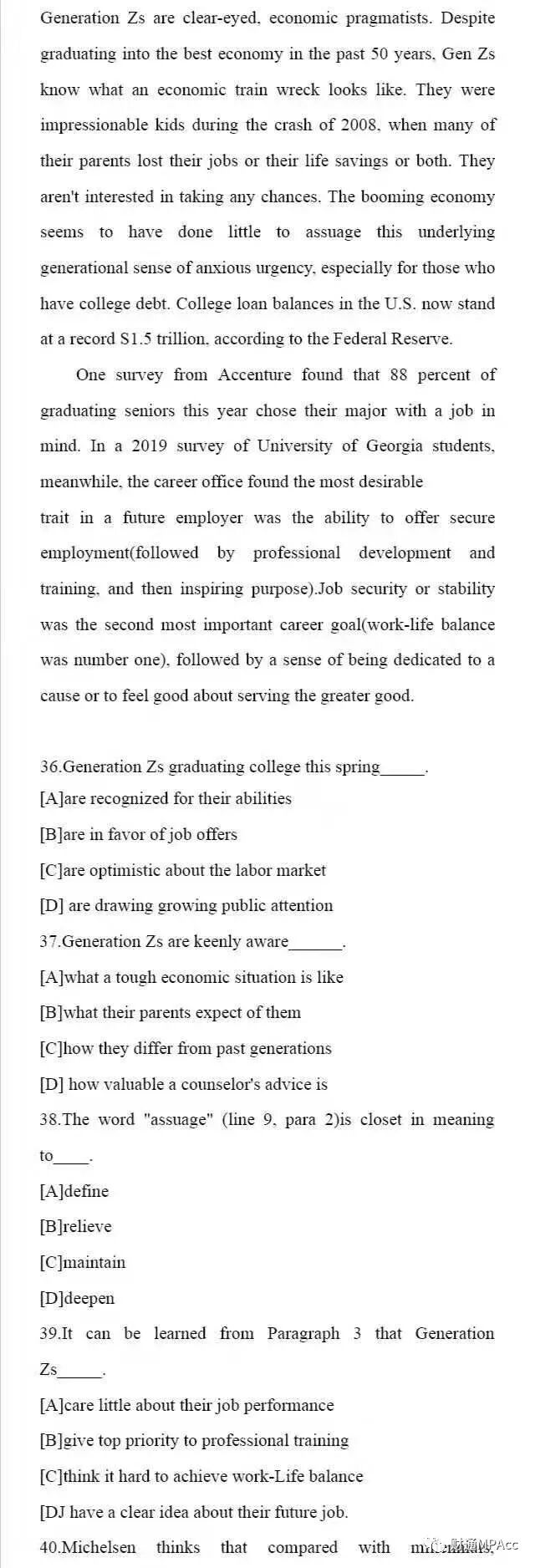 提示:由于考场试题是梅花卷,同学们对于同一道试题的答案选项可能不一样。